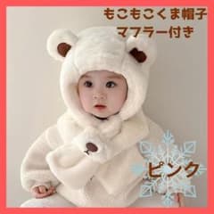 【極暖】くま耳 帽子 ベビー キッズ マフラー 防寒 ネックウォーマー ピンク