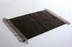 青と白のチェック柄ラグ フリンジ付き