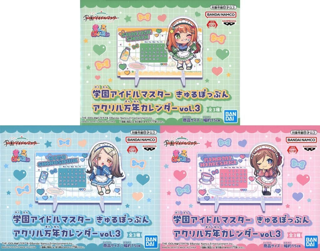 全3種セット きゅるぽっぷん アクリル万年カレンダーvol.3 「学園アイドルマスター」