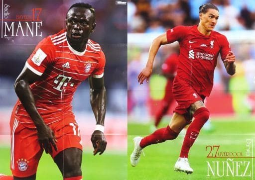 両面B2ポスター(八つ折) サディオ・マネ#17(バイエルン)/ダルウィン・ヌニェス#27(リバプール) ワールドサッカーダイジェスト No.610 2022年9月1日号付録