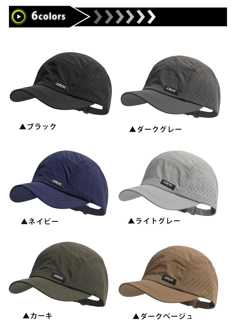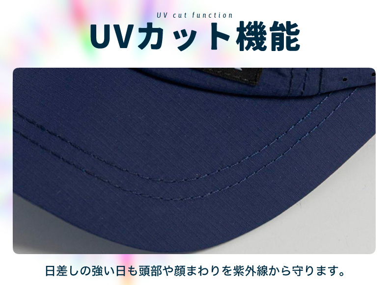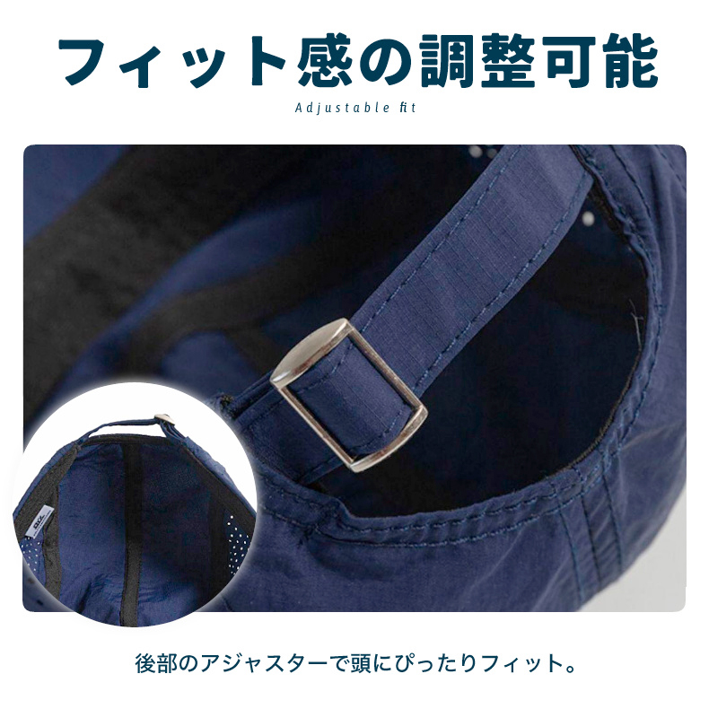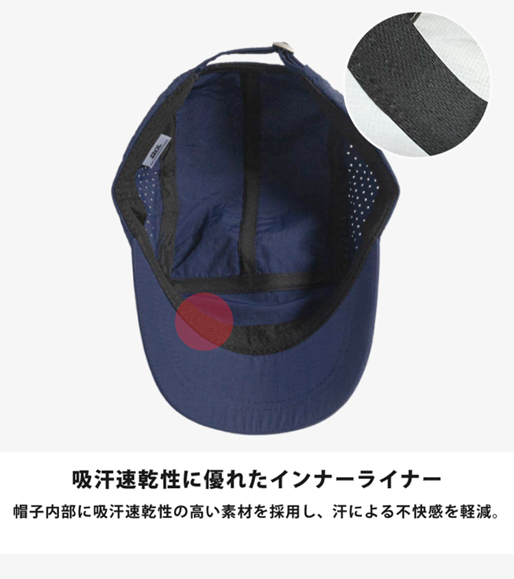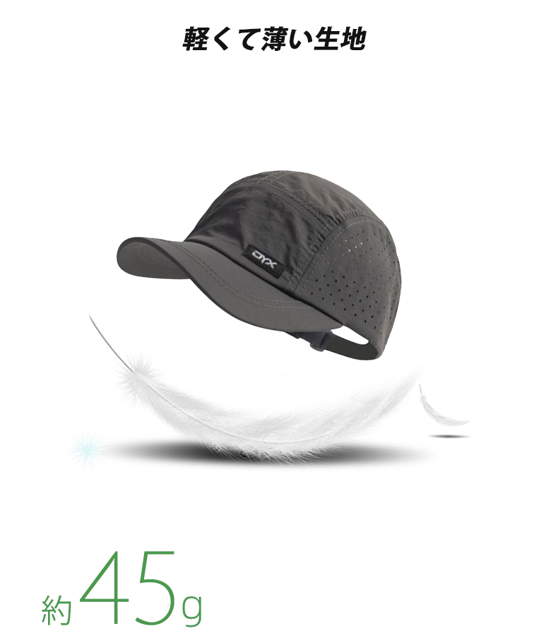 ◎ポリエステル素材の速乾性キャップ。