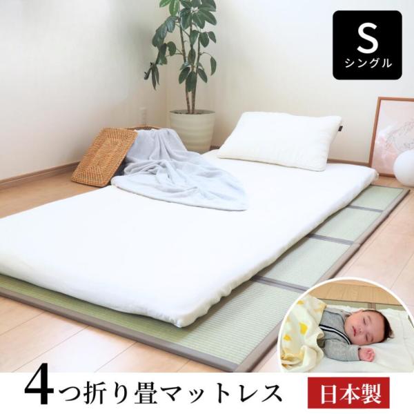 【爆買】【床暖房対応】国産 畳マット 畳マットレス い草 4つ折り シングル 100×200cm 床冷え防止 赤ちゃん カビ防止 直置き 調湿 湿気取り 倉敷産
