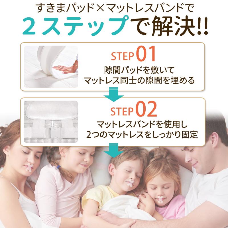 隙間パッド ベッド 埋める マットレスバンド すきまパッド セット 洗える 連結 ずれ防止 ベルト シングル ダブル セミダブル ベット パット カバー ワイド
