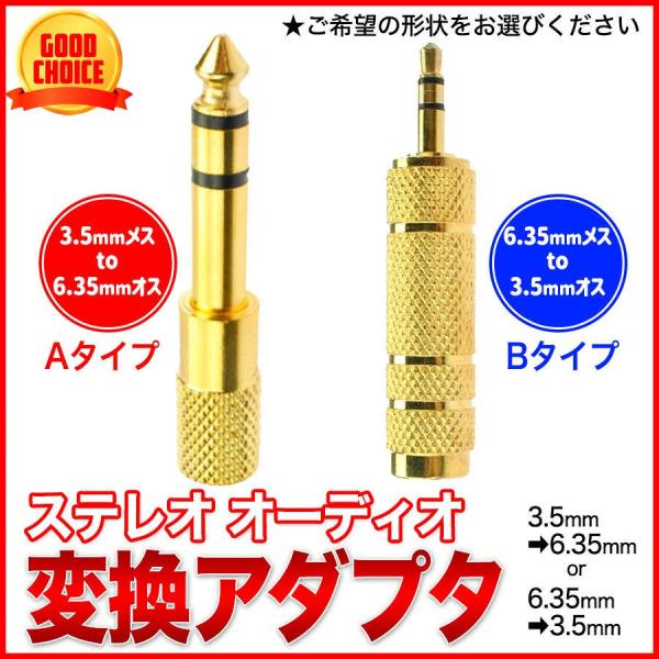 ステレオ プラグ 変換アダプタ ステレオミニ (メス) ⇒ステレオ標準 (オス) ステレオ標準プラグ 3.5mm 6.35mm メスオス ヘッドホン アンプ 電子ピアノ イヤホン