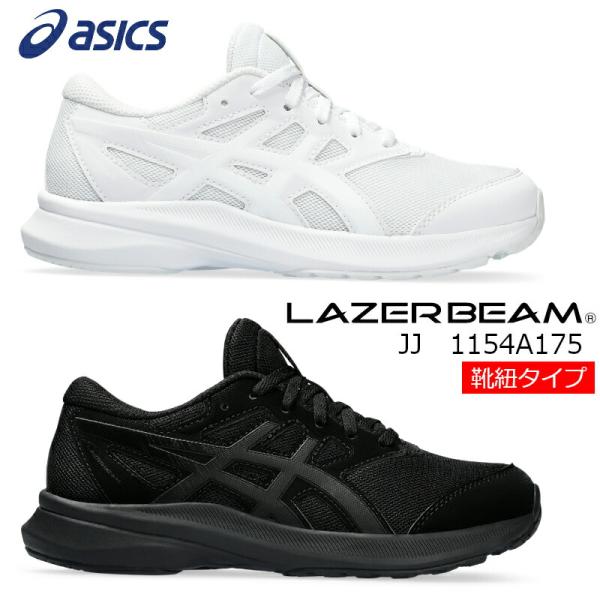 1154A175 ASICS アシックス LAZERBEAM JJ レーザービーム キッズ ジュニア 子供靴 白 黒 ホワイト ブラック シンプル 紐靴 ヒモ シューレース 通学靴 運動靴