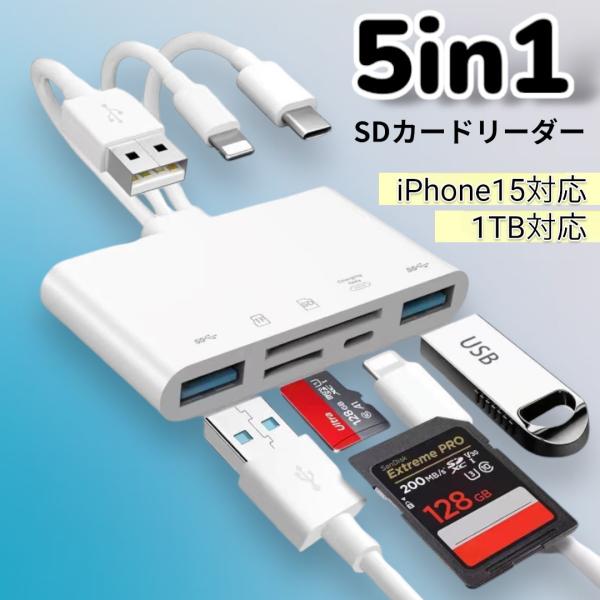 sdカードリーダー iphone 相互転送 【2点購入で10%OFF】 5in1 iPhone15対応 1TB対応 充電可能 microSD usb type-c USBメモリー