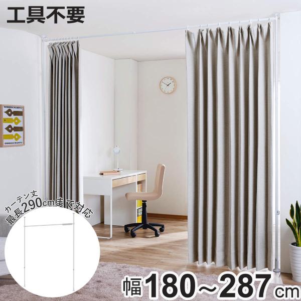 突っ張り カーテン間仕切り ワイド 幅180-287cm 工具不要 ( つっぱり カーテン カーテンポール 間仕切り 目隠し 伸縮 簡単設置 リング付き )