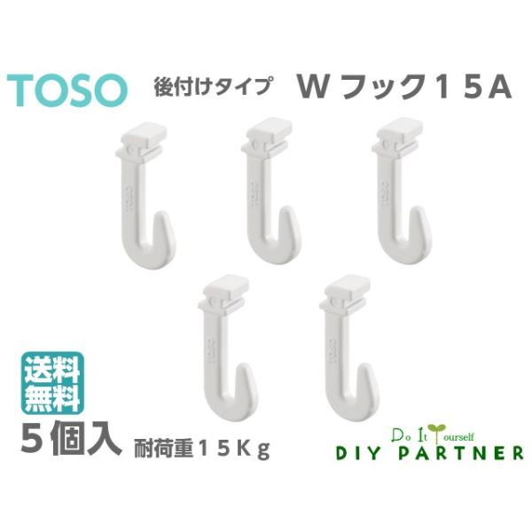 5個入 TOSO WフックW15-A ピクチャーレール W−1専用後付けフック レールフック wフック 15a トーソー