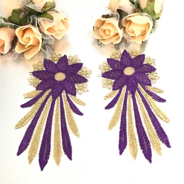 レース アップリケ アイロン用 ゴールド 衣装 刺繍ワッペン ブレード レオタードモチーフ アイロンワッペン アイロン接着 モチーフ バトントワリング
