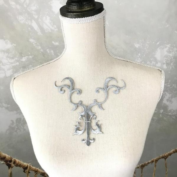 アップリケ シルバー ネックライン モチーフ 衣装 刺繍ワッペン レオタードモチーフ アイロンワッペン アイロン接着 モチーフ 装飾 服飾 バトントワリング