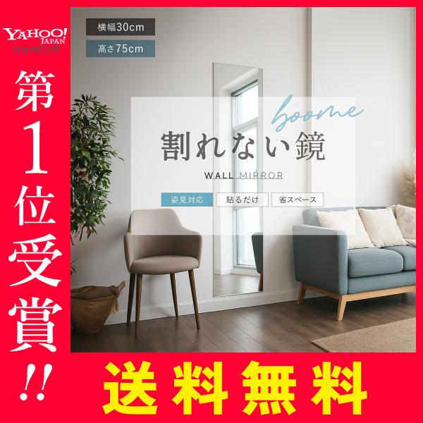 鏡 全身鏡 姿見鏡 割れない 飛散防止 二次災害防止 ケガ防止 穴あけ不要 貼付け可能 両面シールつき 軽量 おしゃれ インテリア