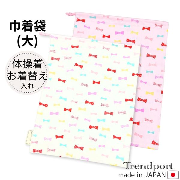 巾着袋 大 おしゃれ 女の子 キャンディりぼん 大きめ 体操着袋 お着替え袋 保育園 幼稚園 小学校 日本製 綿 子供 かわいい 30x40