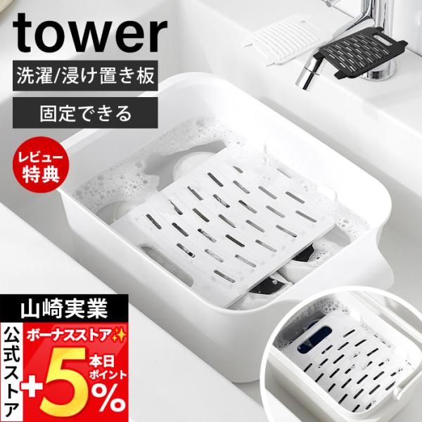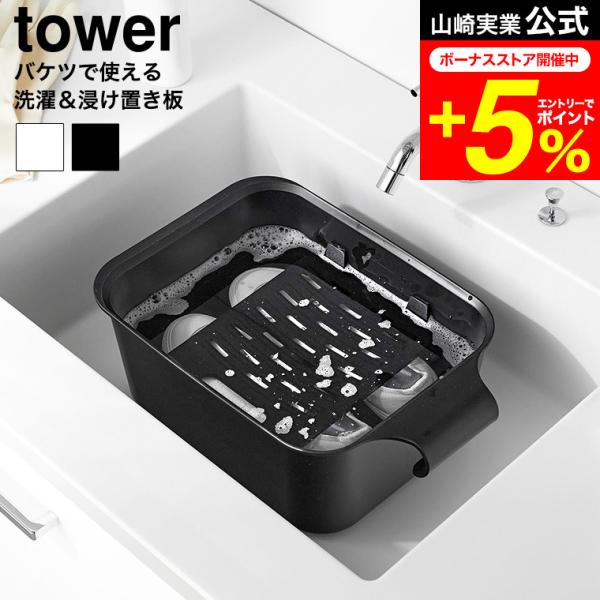 tower 山崎実業 バケツで使える洗濯&浸け置き板 タワー 公式 10133 10134 ホワイト ブラック / 洗濯板 せんたく板 つけ置き つけおき