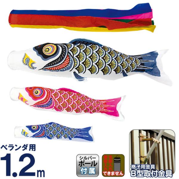 五色吹流しナイロン鯉1.5mホームセット ベランダ柵用 キング印鯉のぼり